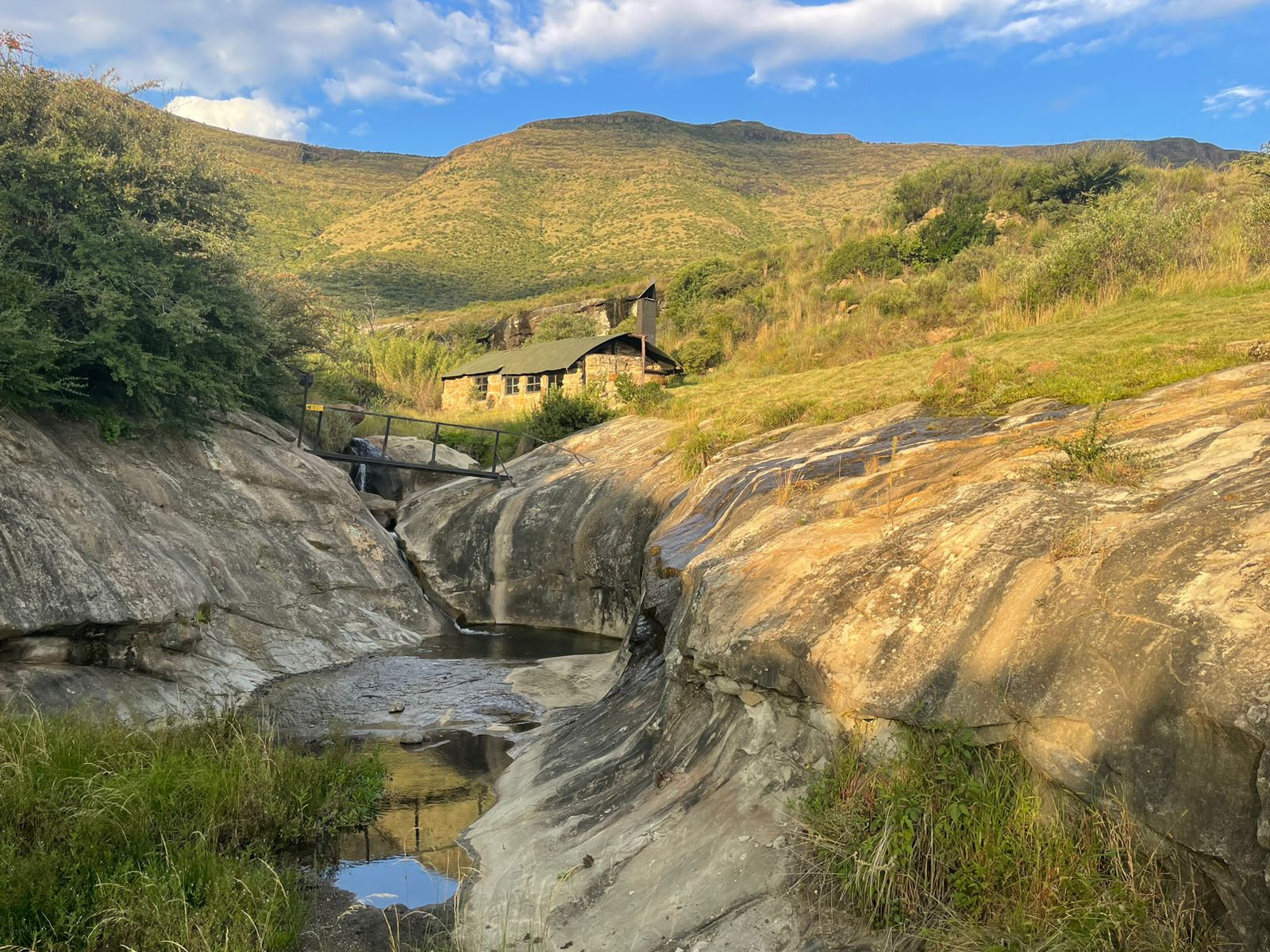 Here are very little/ basic facilities: Hikers must supply their own groundsheets and mattresses. There are 3 rooms/ shelters or sleep near fire/under overhang. A braai grids, large kettle, one cast iron pot are provided.Some water available in containers Please use it sparingly. If you need more water or want to wash yourself, follow the marked route down into the ravine below to the spring. It is about 450 meters from the overhang. There are only 2 x pit toilets.NB: No Rubbish is collected at the Barolong Cave.