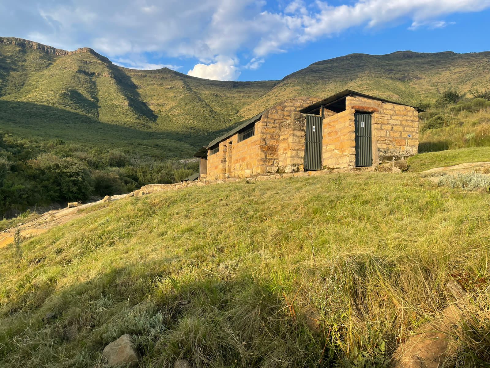 Here are 22 Beds (bunker) and mattresses, two flush toilets, showers (gas geyser for hot water in showers), braai grid, two kettles, cast iron potjie. Wash up zink. Limited supplied of wood. Hikers must provide own lighting, all cutlery and crockery.